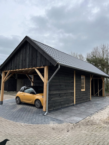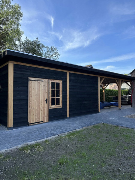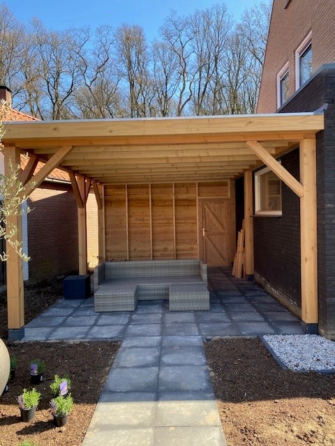 Het hout zagen we zelf in onze eigen houtzagerij, waardoor we de hoogste kwaliteit en een perfecte afwerking kunnen garanderen. Zo ontstaat een duurzaam, tijdloos buitenverblijf dat jarenlang warmte en sfeer toevoegt aan uw tuin.